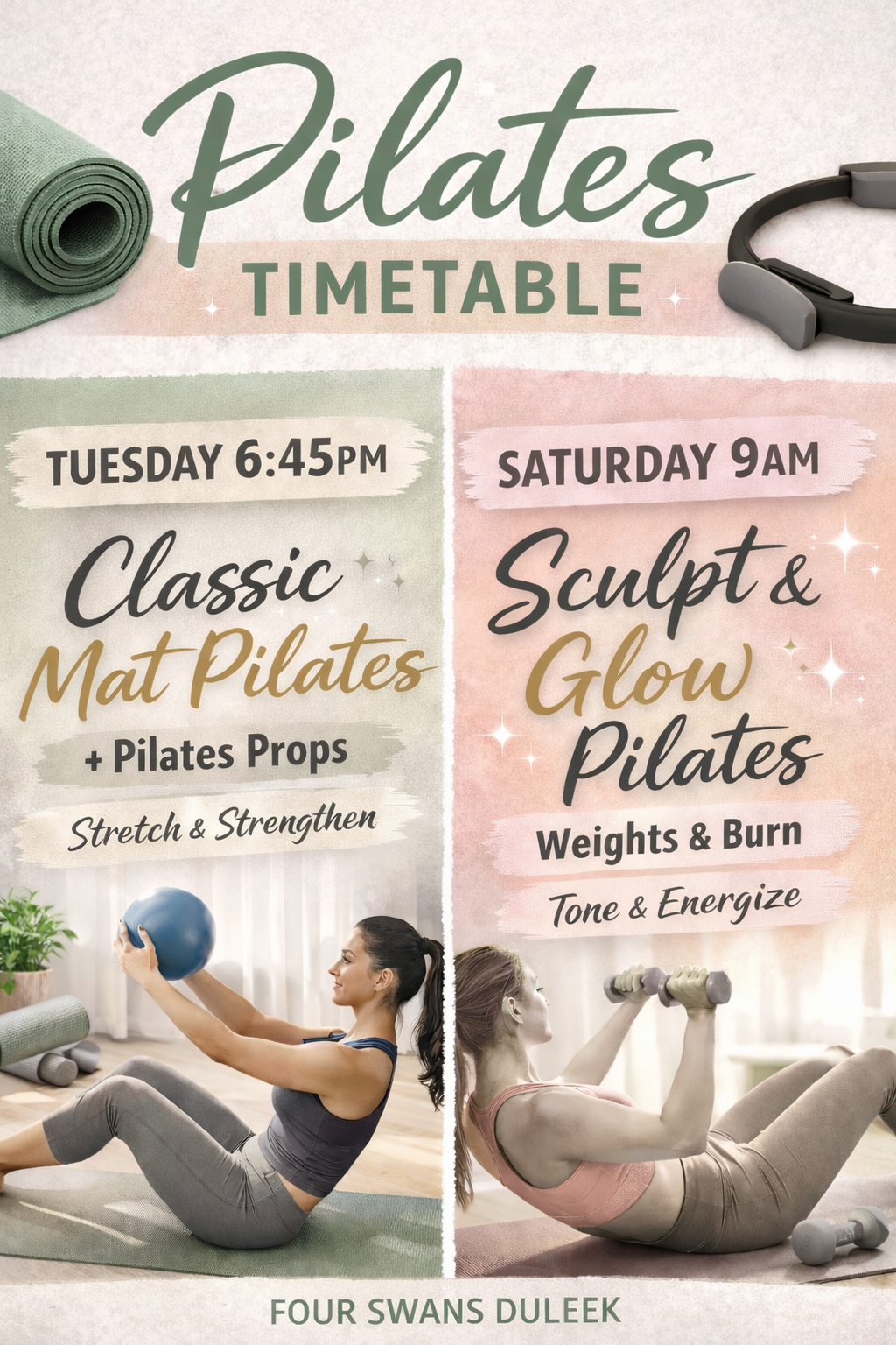 SATURDAY Morning 9am – Sculpt & Glow Pilates